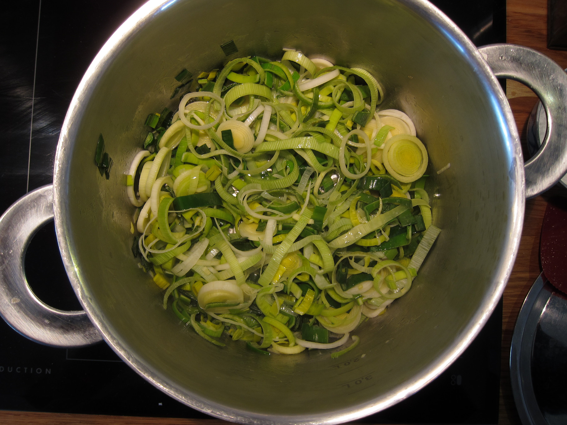 Skölj och skiva purjolöken. Olika recept säger att man bara ska ta det vita men det funkar bra med att ta en del av det gröna också.