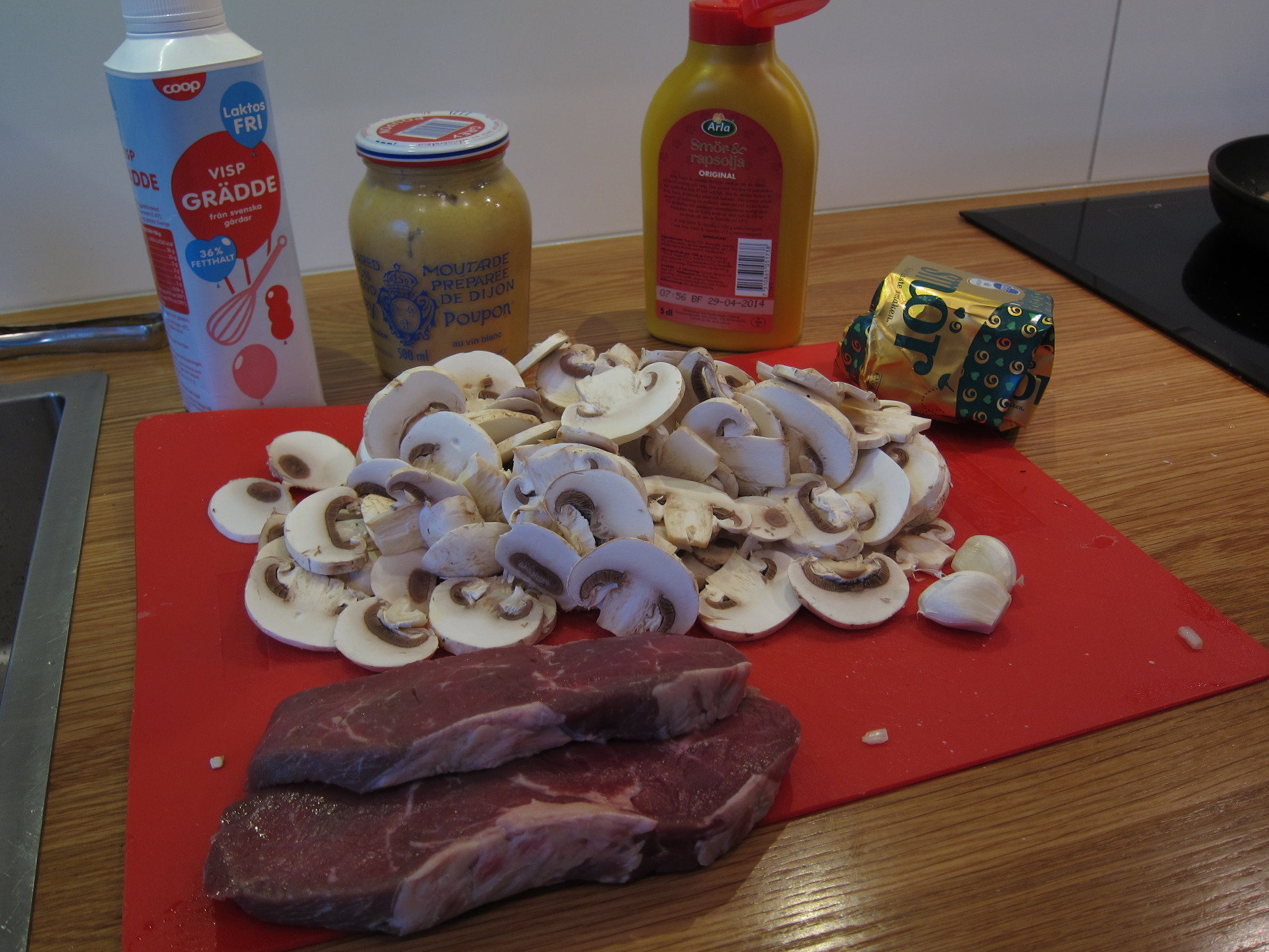 En biff är aldrig fel och fransk senap är väldigt gott. En bra rätt att ta till då man inte har så mycket ork att stå vid spisen eftersom det går att laga till snabbt. I alla fall om man väljer pommes frites istället för klyftpotatis.