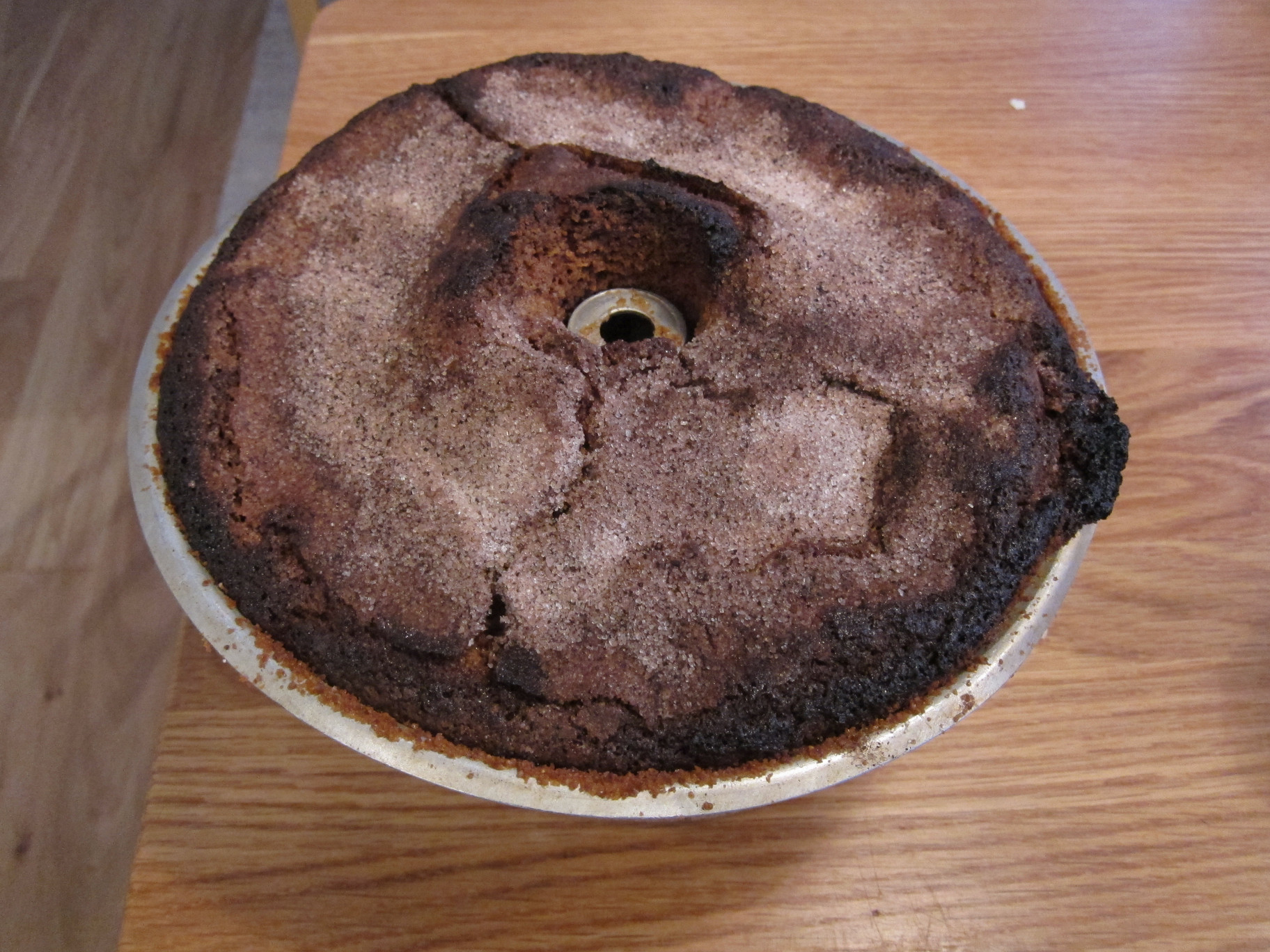 Varva smet och fyllning i formen. Avsluta med att strö lite extra socker och kanel över ytan.